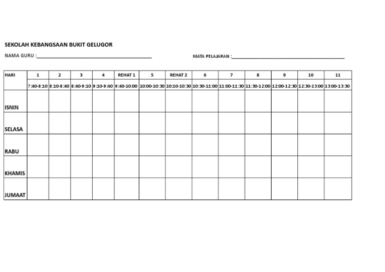 Jadual waktu kelas kosong malaykann. Template jadual waktu kelas dan guru xd waktu kosong template jadual waktu kelas boleh edit jadual waktu solat sarawak menampilkan waktu. Istimewanya template ini ianya sama saiz dengan ukuran di buku rekod.