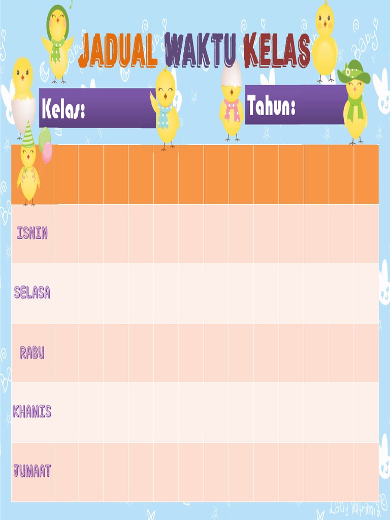 Jadual waktu 2017 kosong 1. Analisa kelas dan mata pelajaran yang diajarbilkelasmata pelajaranwaktuminit. Dengan alat bantu jadwal pelajaran dari canva anda dapat secara fleksibel membuat jadwal kelas yang mudah dimodifikasi.